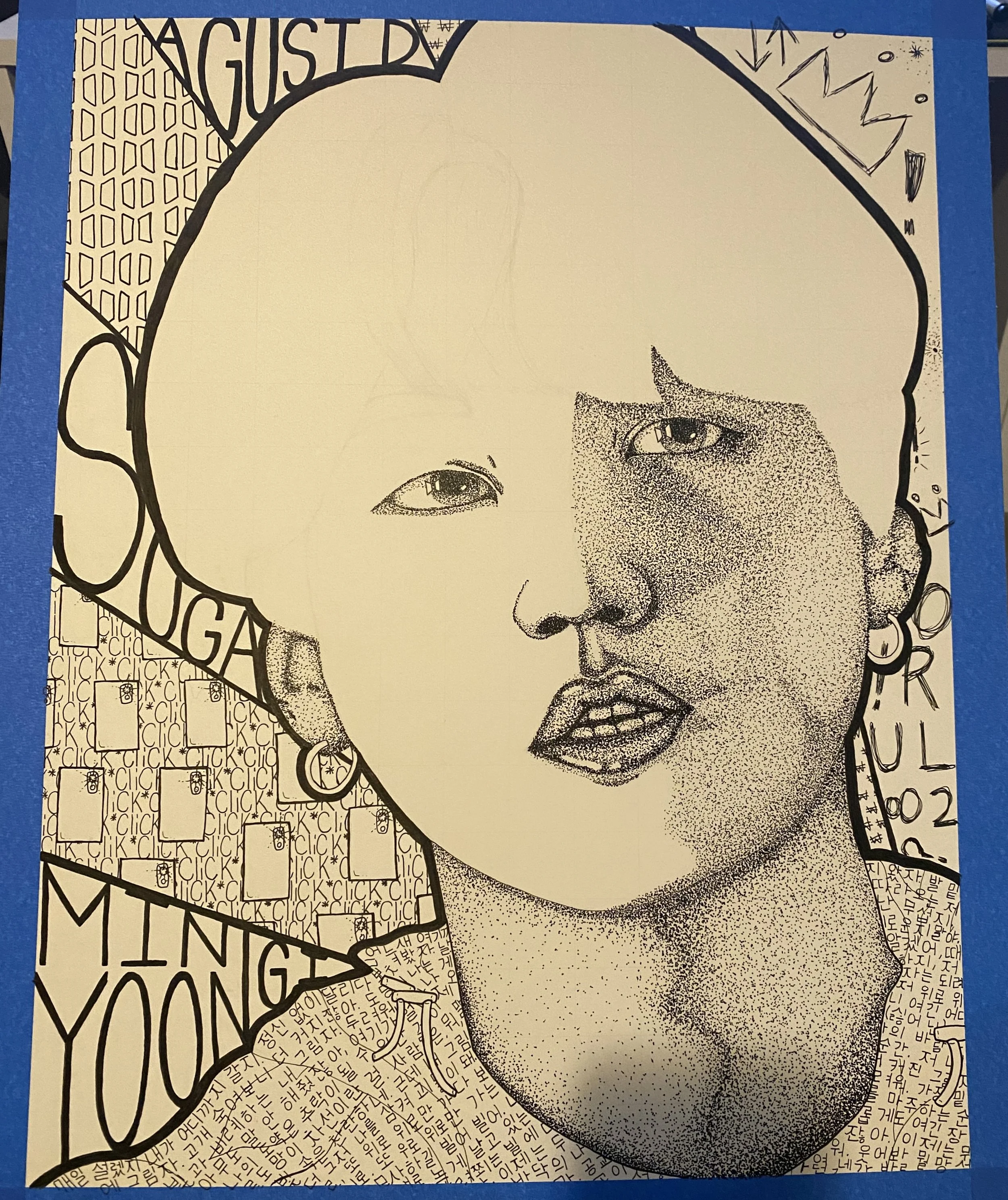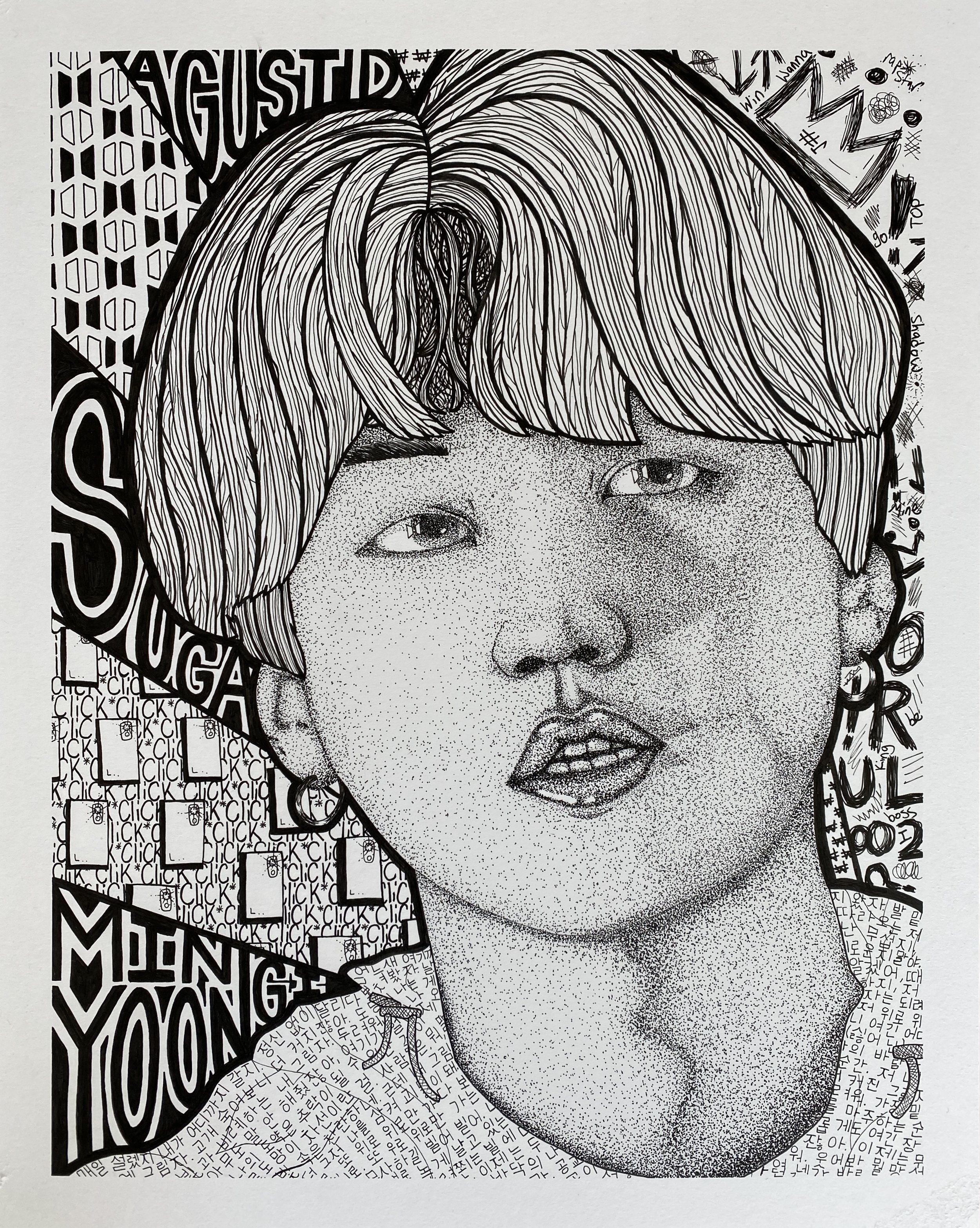 Ink abstract portrait of K-Pop star SUGA